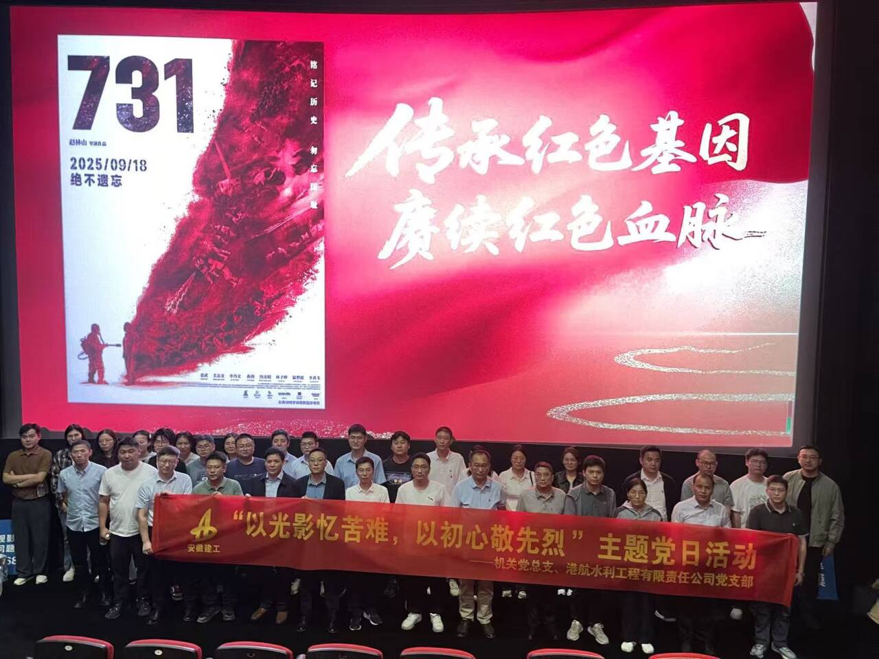 為紀(jì)念 “九一八” 事變爆發(fā) 94 周年,銘記歷史,緬懷先烈,9月18日,公司機(jī)關(guān)黨總支、港航水利公司黨總支聯(lián)合開展主題黨日活動(dòng),40 余名黨員干部及職工集體觀看了電影《731》,以光影為鏡回望歷史,在銘記中筑牢信仰根基,讓 “九一八” 警鐘長(zhǎng)鳴。