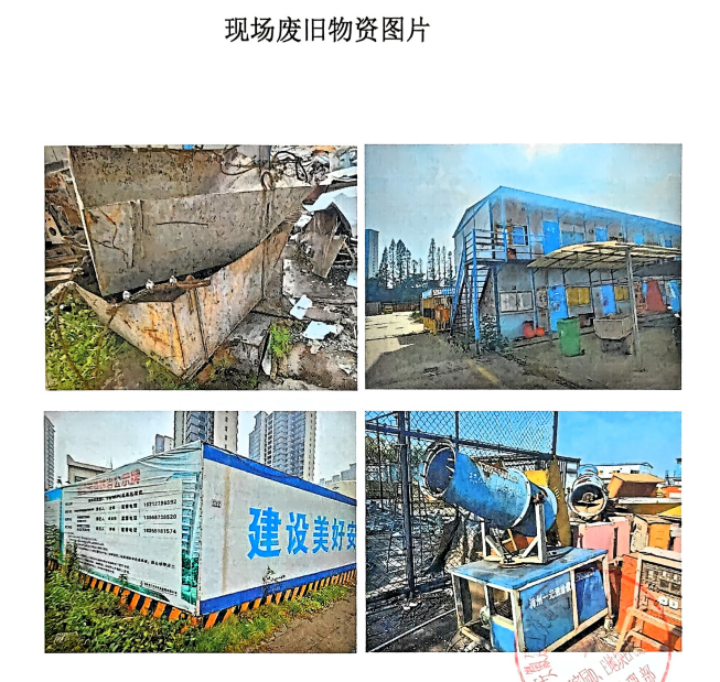 1.潭沖河項(xiàng)目:廢舊配電箱50臺、料斗7個(gè)、圍擋470米、活動(dòng)板房3棟(42間)、霧炮機(jī)2臺;